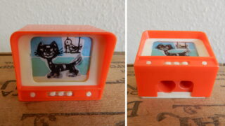 玩具・雑貨・飾り物 レンチキュラーの鉛筆削り 子どもの頃、お菓子を買うと箱の中に入っていたおまけ。四角いシートで、指で持って動かすと、印刷された画像が変化するやつ。ネットで調べたら「レンチキュラー印刷」というのだと知った。これは、夫が小さな頃(1960年代中頃の話)に使っていたらしく、... 2025.09.11 玩具・雑貨・飾り物