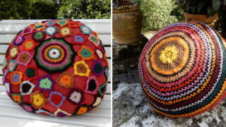 手芸・布類・道具 かぎ棒編みの丸い鮮やか色クッション