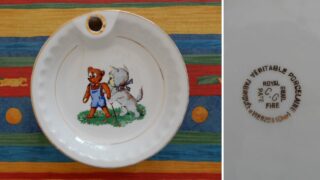 夫が幼児時代に使っていた皿。なお、彼自身は全く覚えていないとのこと。義母がまだ元気だった頃、この家の食器棚を一緒に片付けたことがある。その時に見つけた皿で、縁の部分に穴がある。不思議に思い、義母に聞いた。「これね、熱いお湯を中に入れて、幼児...