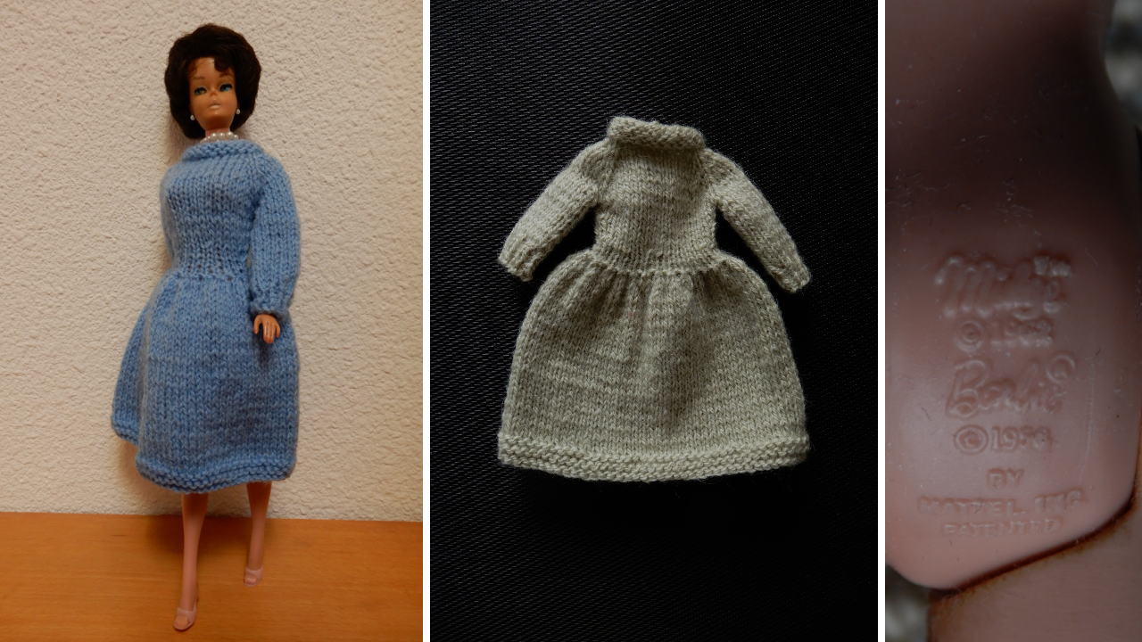 人形の服を作るのも趣味のひとつだった義母。彼女の作ったものの多くがミッジにぴったりだ。手編みのワンピースはスタンドカラー。そら色と若草色、ミッジにはどっちが似合う?