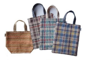 しばらくして、友人からメールで写真が送られてきた。タータンチェックの生地は、少し起毛のある厚手のもので、色違いで何種類かあったことを思い出した。あら〜、素敵なトートバッグに!左側の手さげは、サーモンピンクや薄茶色が混ざったジャガード織りのような生地だったか…。